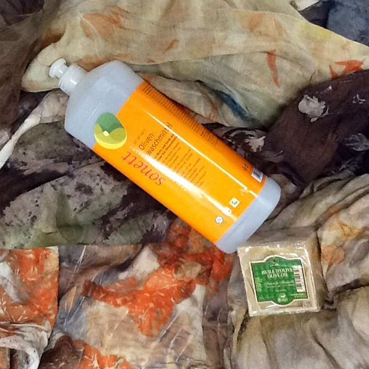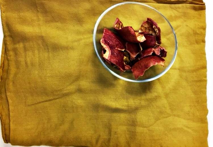 Für Wolle eignen sich alle Naturfarben ganz wunderbar! Eigentlich ist Wolle DIE Faser für Naturfarben, oft braucht man für gute Färbungen nicht einmal Beizen! Einfach den rohen Stoff färben! Das Beispiel oben zeigt eine Färbung mit Granatapfelschalen.