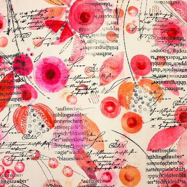 Weniger bekannt ist, dass Säurefarben Bestandteil vieler Batikfarben sind (z.B. DEKA L Batikfarben). Nach dem Auflösen eines solchen Farbpulvers kann man damit färben oder sie angedickt zum Malen und Drucken verwenden. Das Foto oben zeigt einen Schal aus Etamine de Laine, der von Rita Weins mit angedickten Deka L-Farben bedruckt (Siebdruckschablonen und Moosgummi) und bemalt wurde. Ist das nicht eine großartige Arbeit?