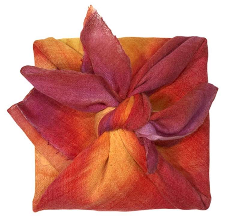 Die Verpackung ist das eigentliche Geschenk! Hier ein Wolletaminetuch, das im Topf mit Säurefarben gefärbt wurde